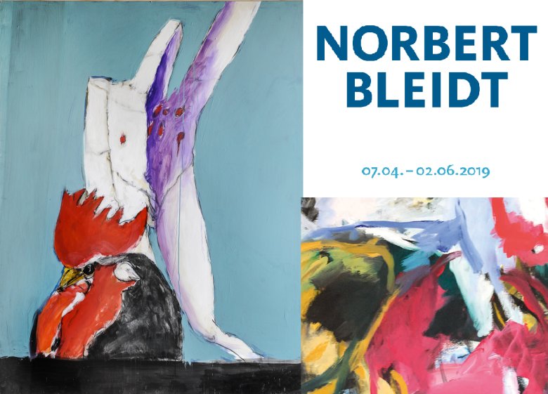 In der Ausstellung werden über 40, vor allem großformatige Werke mit figürlichen und abstrakten Motiven gezeigt. Der Maler, Grafiker und Architekt Norbert Bleidt wurde 1939 in Heimbach-Weis (Stadtteil von Neuwied) geboren. Nach seinem Studium an der Werkkunstschule Köln arbeitet er als Architekt und Maler in seinem Heimatort. Viele seiner architektonischen und bildnerischen Arbeiten, vor allem auch „Kunst am Bau“-Objekte und Großskulpturen, befinden sich in Stadt und Kreis Neuwied und darüber hinaus. Beeindruckend sind das Mahnmal für die Opfer von Krieg und Gewaltherrschaft in Heimbach-Weis und seine künstlerische Gestaltung im ehemaligen Umspannwerk Berlin.