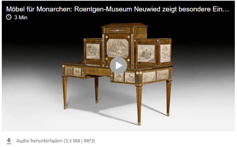Vom 13. 08. – 12.11.2023 zeigt das Roentgen-Museum Neuwied unter dem Titel „Möbel à la Roentgen – Inspirationen aus der Neuwieder Manufaktur“ eine Sonderausstellung mit rund 40 prächtigen Möbeln aus dem Umfeld und der Nachfolge von Abraham und David Roentgen, den europaweit bedeutendsten Kunstschreinern des 18. Jahrhunderts.
