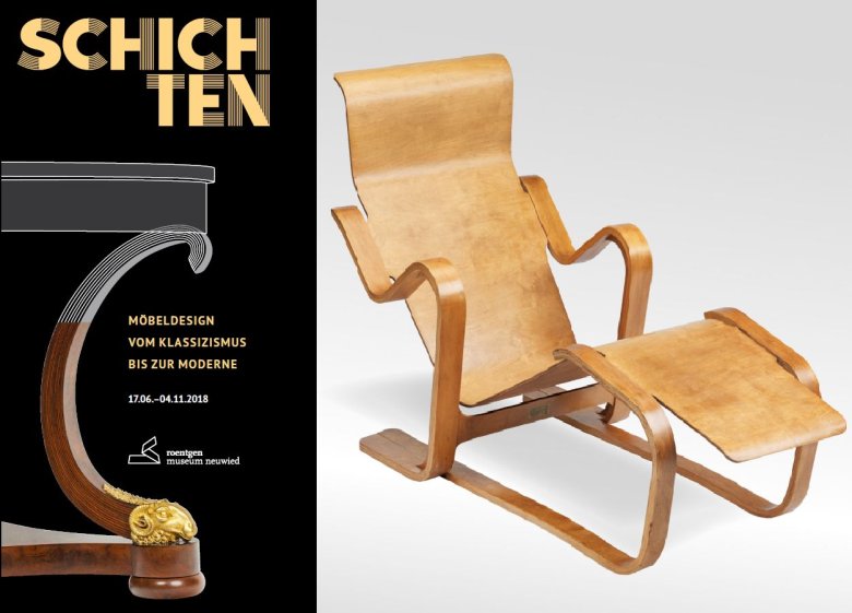 Das Roentgen-Museum Neuwied rückt bis zum 04.11.2018 mit der Ausstellung „Schichten. Möbeldesign vom Klassizismus bis zur Moderne“ ein Material in den Fokus, das häufig, jedoch fälschlicherweise als minderwertig abqualifiziert wird: Es geht um Sperrholz beziehungsweise Schichtholz.